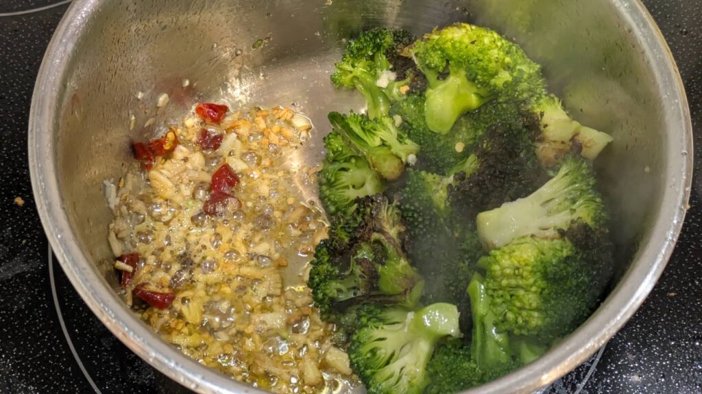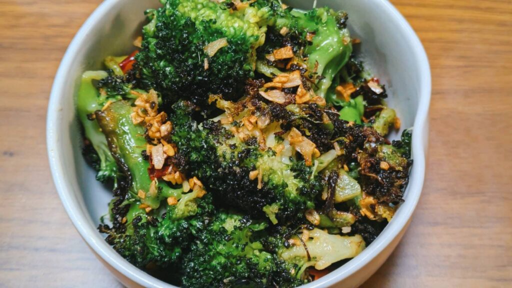 ポイントはブロッコリーを焦げ茶色になるまで揚げ焼きする事でです。