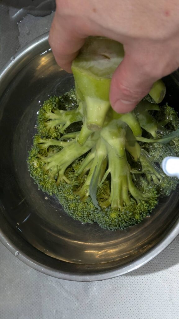ブロッコリーを洗う時は、ボウルに水を張って房から入れてくるくる回せばOKです。