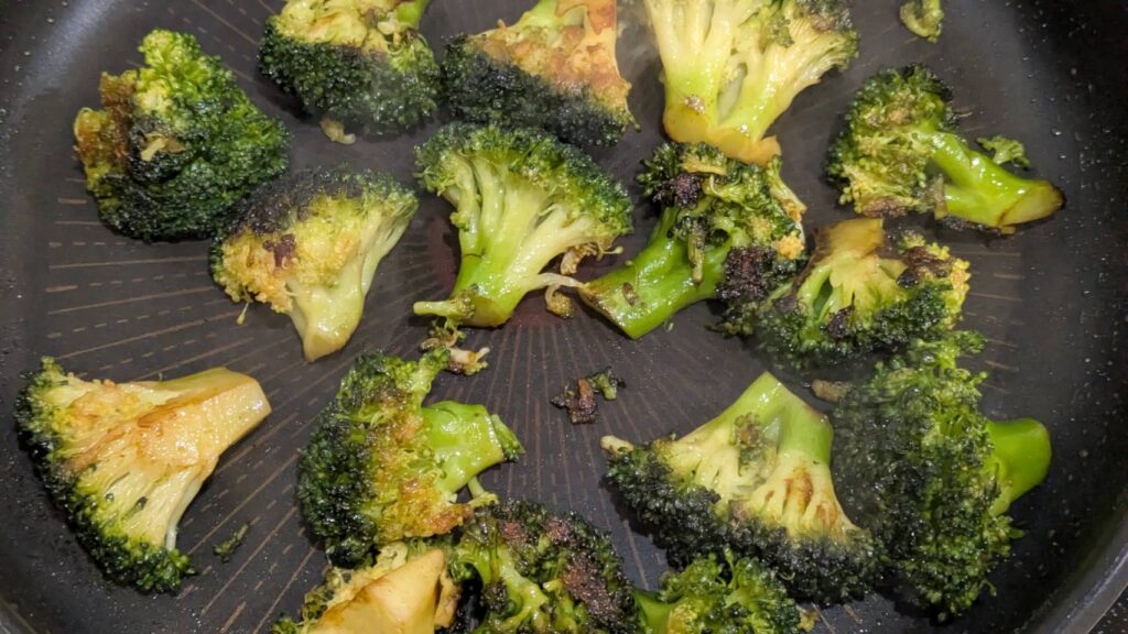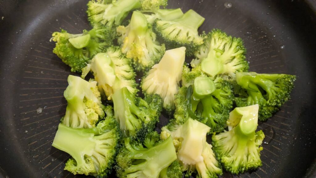 ブロッコリーは蒸し煮にするだけではなく、油を足して揚げ焼きにすると香りと甘みが増します。