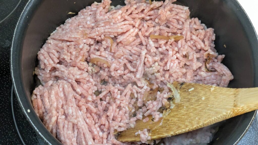 4.豚ひき肉を炒める