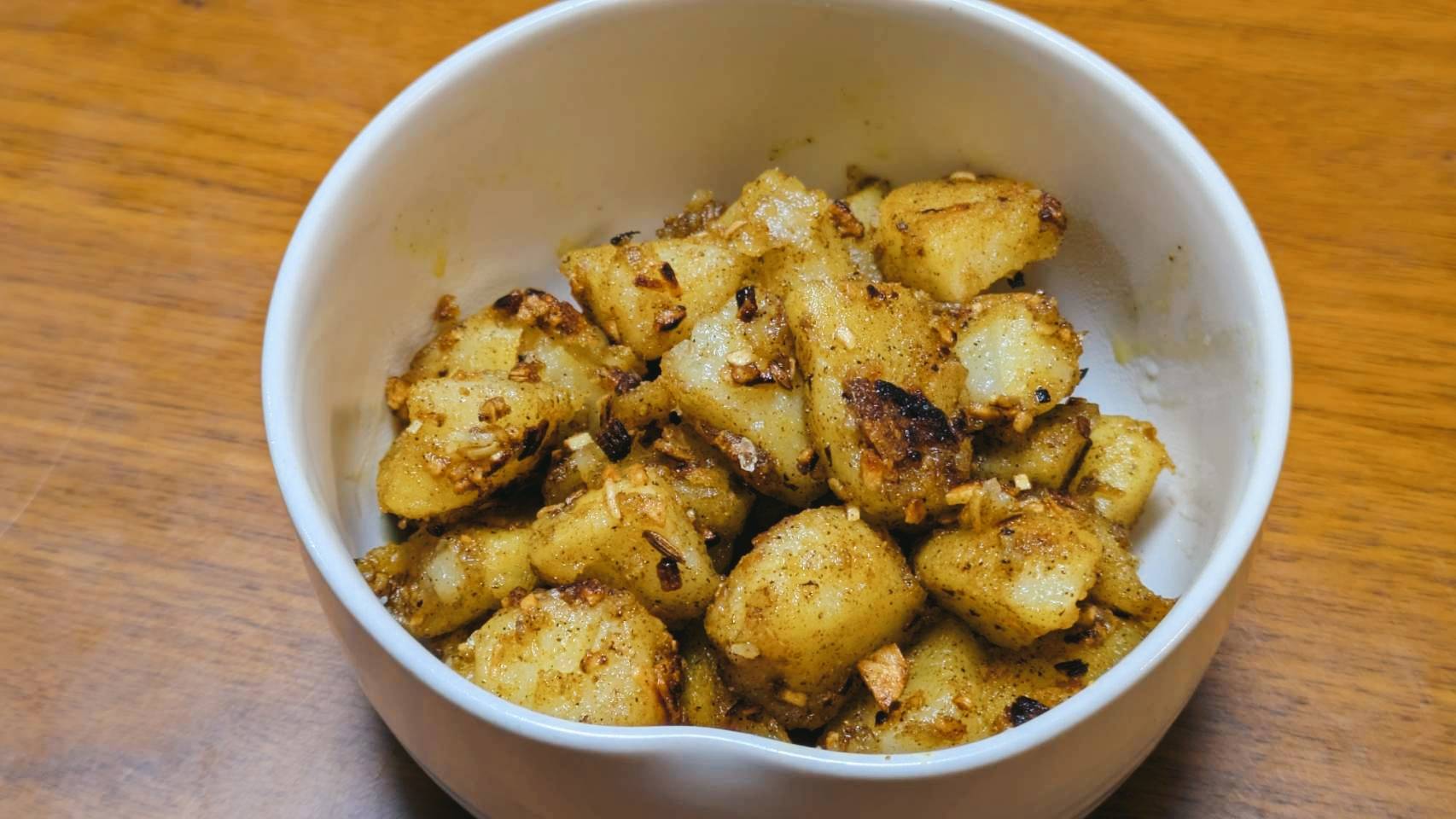インド料理の定番、じゃがいものサブジにアンチョビとにんにく加えて、旨みをプラスしてみました。おつまみにも合うレシピです。