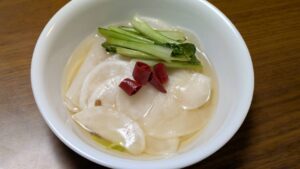 3.ゴマ油、黒胡椒を入れ15分以上漬ける。完成です。